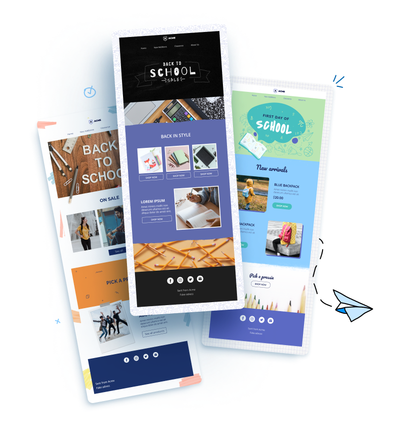 Get multiple back to school email templates for your Shopify store complete with your logo and store's branding. Use them to start sending emails immediately.