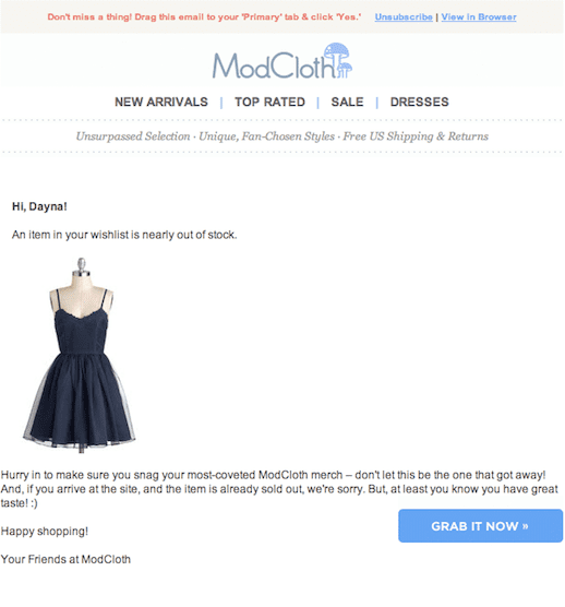 Every online fashion store needs to be sending abandoned cart emails. Failing to do so would be ignoring the 68 percent of customers abandoning carts on your ecommerce site.