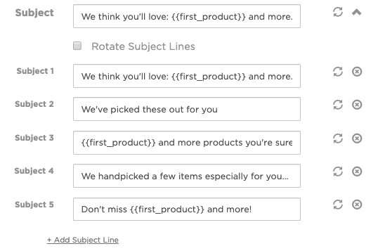 For email campaigns that you send on a regular basis, such as personalized product recommendations, you should also keep subject lines fresh.