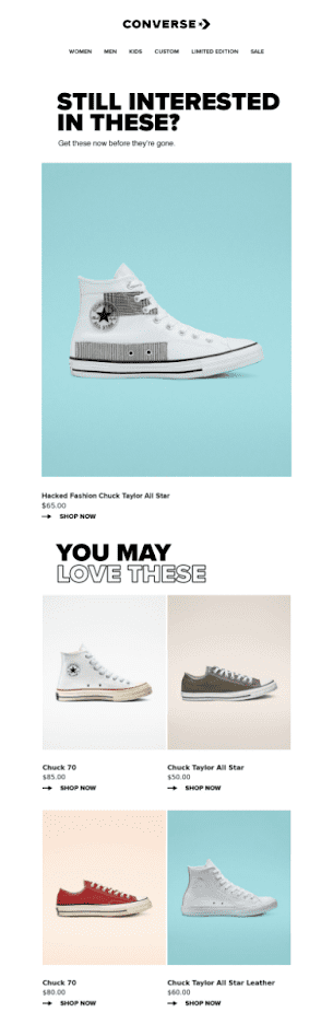The browse abandonment campaign below from Converse makes good use of product recommendations.