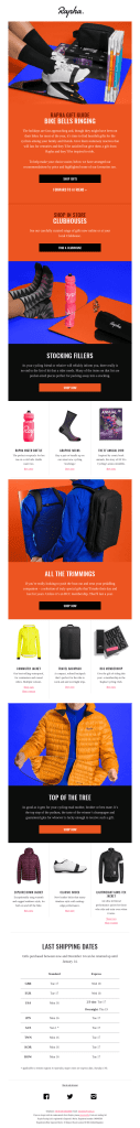 Just be sure to include key examples of products from a range of collections to maximize the chances something will catch your subscriber’s eye. Just like how Rapha has done it.