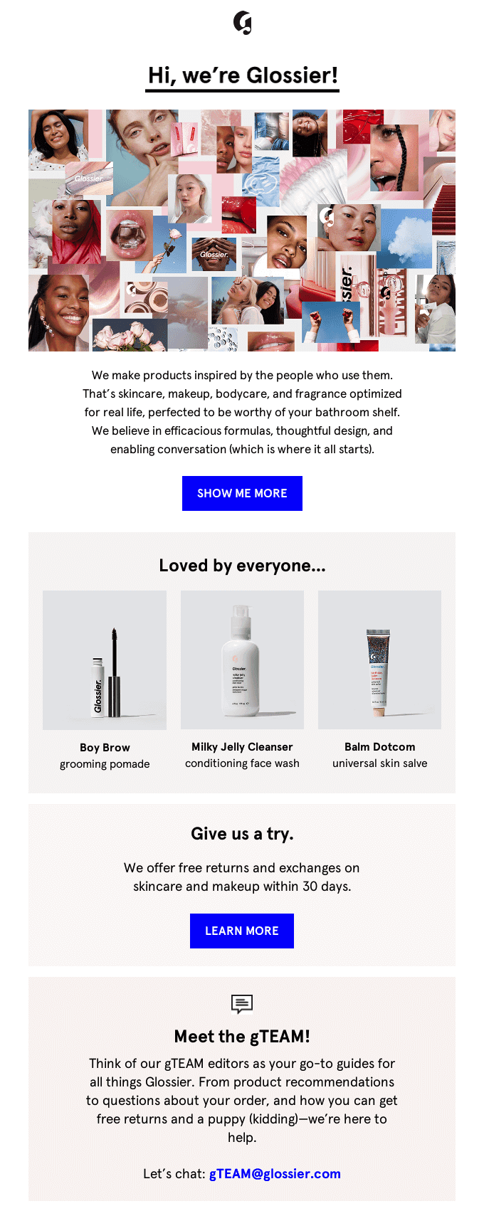 After you’ve thanked your new subscriber for signing up and reiterated what they should expect from being on your list, the next thing most brands do in their welcome series is introduce themselves a bit more.